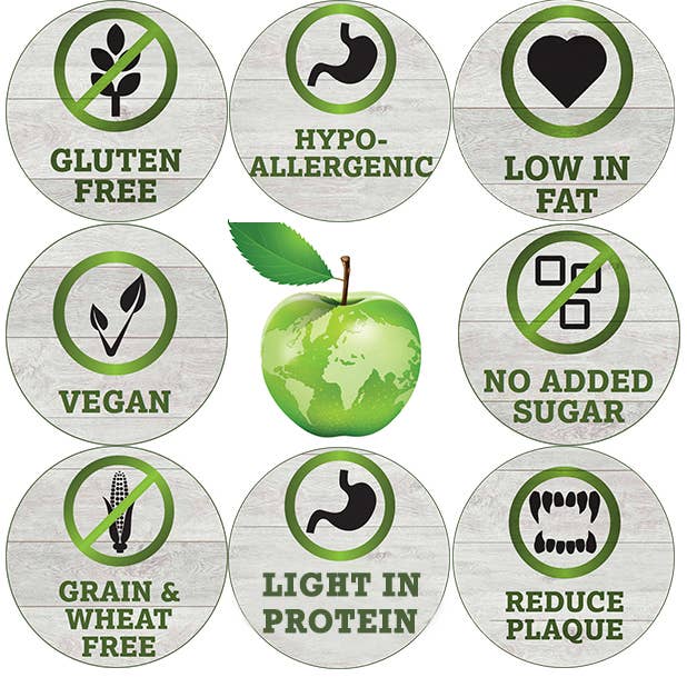 Benefits * Xylitol-Free Peanut Butter for Dogs * Palm Oil free * Gluten-free * Grain-free vegan-based dog snack * Rawhide-free & Meat-free dog chew * Grain-free * Sugar-free * Low in Fat * Helps Reduce Plaque * Aids Digestion * Hypoallergenic * Gentle on dog’s stomachs * Hypoallergenic * 100% Vegan Ingredients