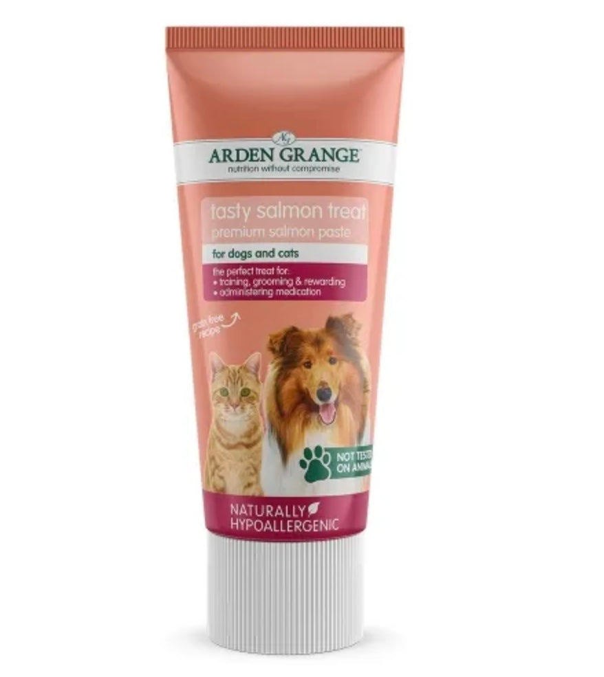 Tasty Salmon Treat is a highly palatable paste which is a perfect reward or training aid for dogs and cats. It is also a great way of giving medication, either mixed in with a crushed tablet or with liquid medications on a dish, and is an excellent aid when grooming.
