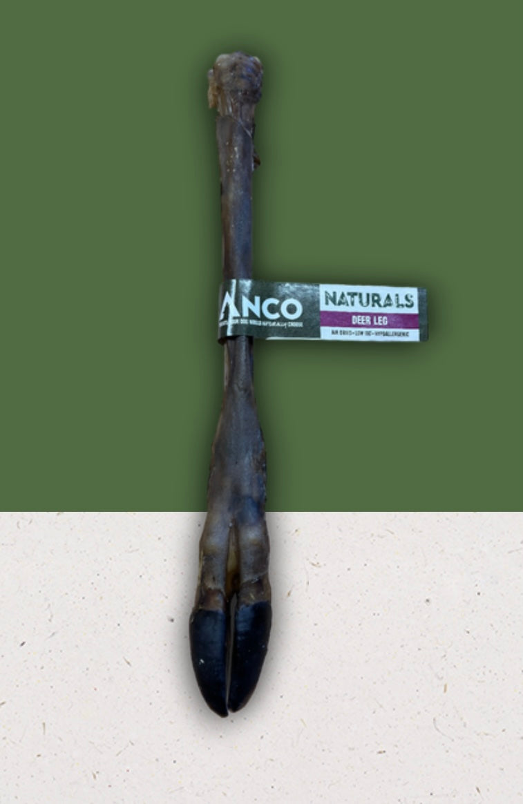 Hairy Giant Deer Legs are a great choice for many reasons, especially those with sensitive stomachs or common protein allergies as they are hypoallergenic. The hair on the leg is left intact, which naturally helps with the removal of parasites from the intestinal tract. As well as that, the hair helps to keep their teeth clean as when your dog chews on the hairy deer leg, it begins to massage the gums and aids the removal of tartar! Naturally high in protein which is essential for the building and maintaining of muscles, they are also air-dried to preserve as many natural nutrients and flavours as possible.