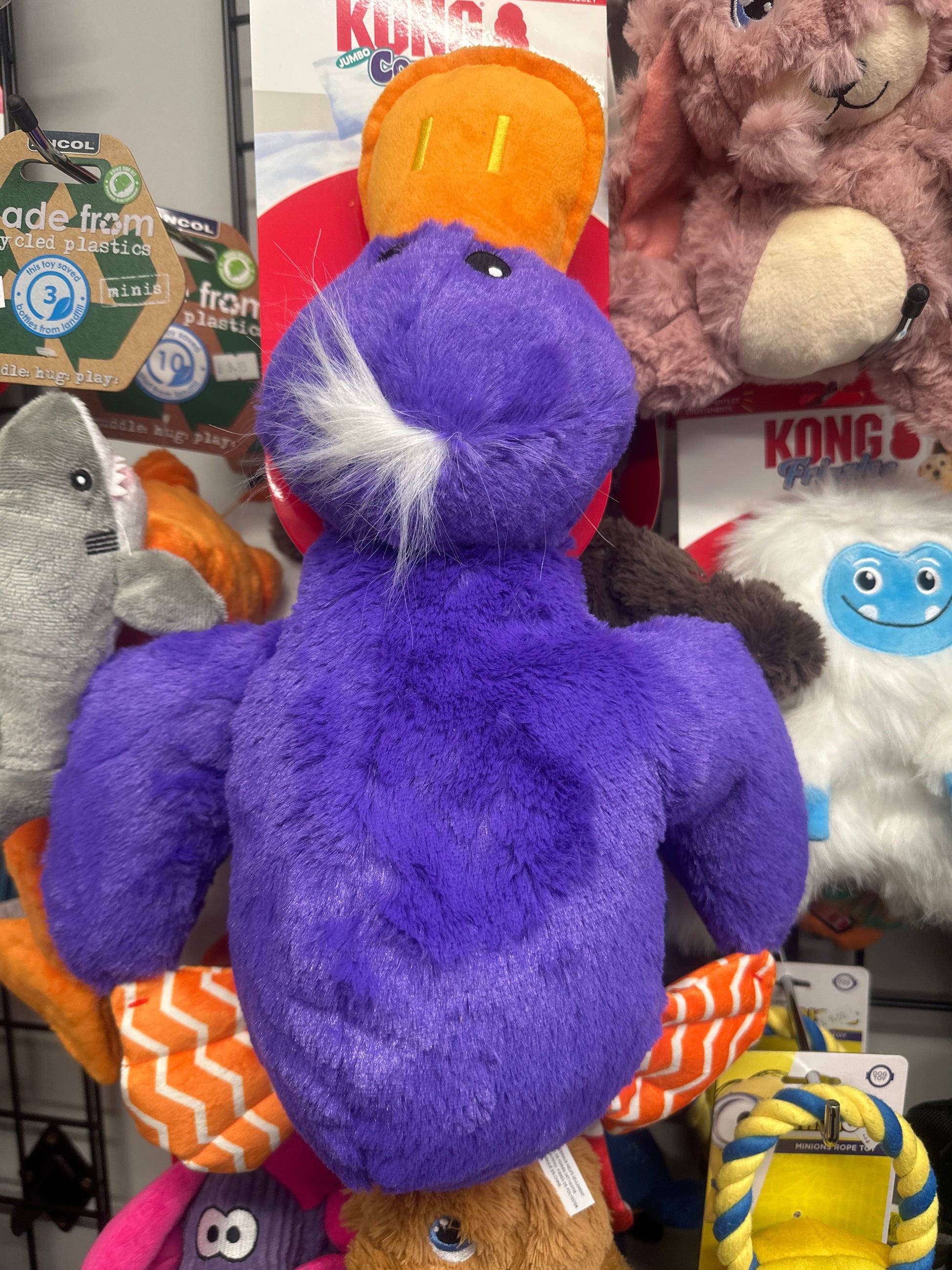KONG Comfort Jumbo has an XL body that invites dogs for extra-large fun. Crinkle sounds extend the engagement and spark natural shaking instincts extending playtime. Added squeakers and an irresistibly soft plush exterior combine with a giant snuggly body that delivers big-time comfort to lucky duck dogs. Ideal for indoor play and naptime.