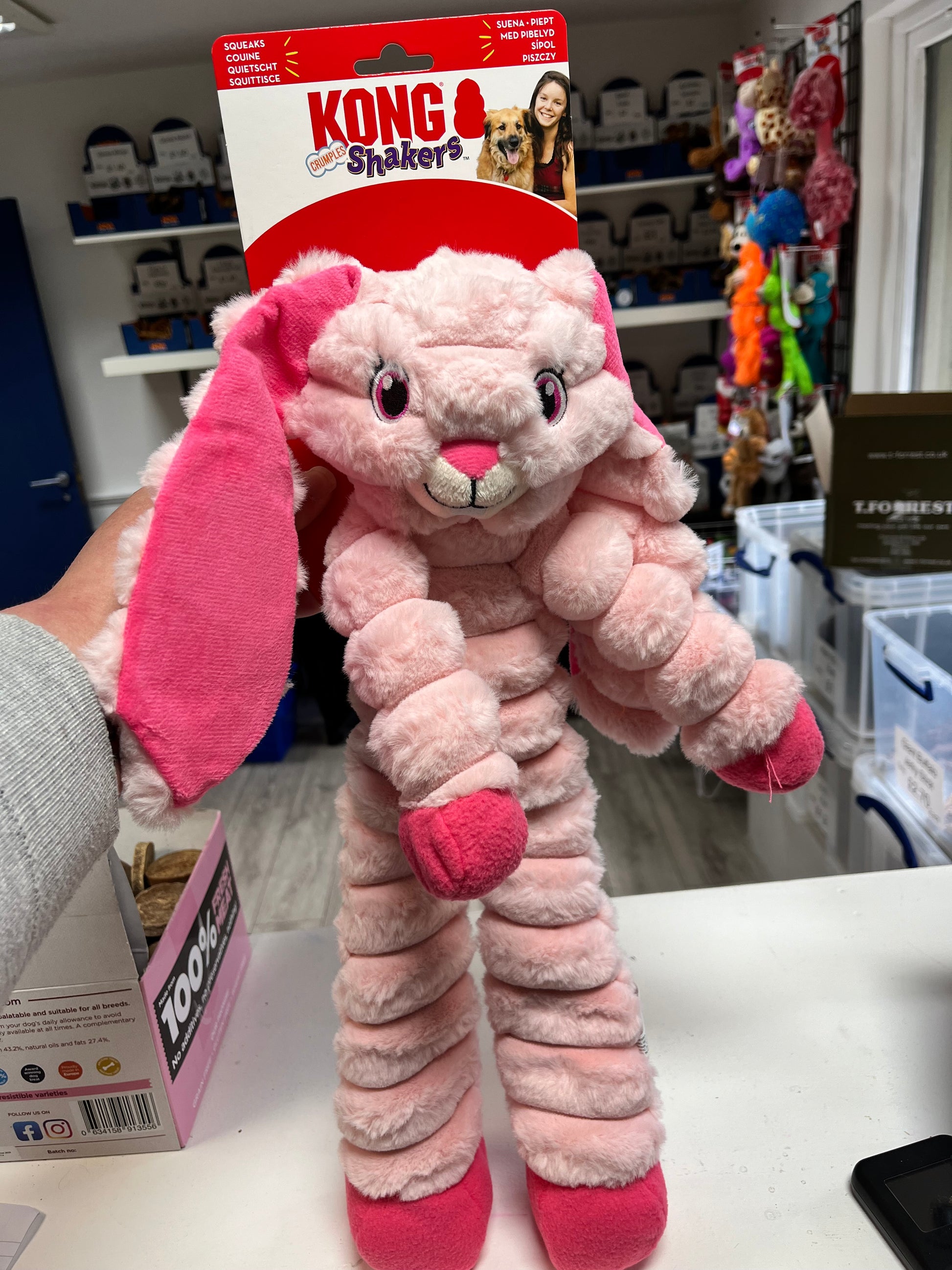 KONG Shakers Crumples’ jumbo size delivers extra-large fun with a long, floppy body great for satisfying shaking, tugging and fetching instincts. A unique grunting squeaker in the body, crackly arms and squeaky feet keep dogs playing. Irresistibly soft plush makes them great snuggle buddies. Thin arms and legs let dogs big and small grab on and enjoy.
