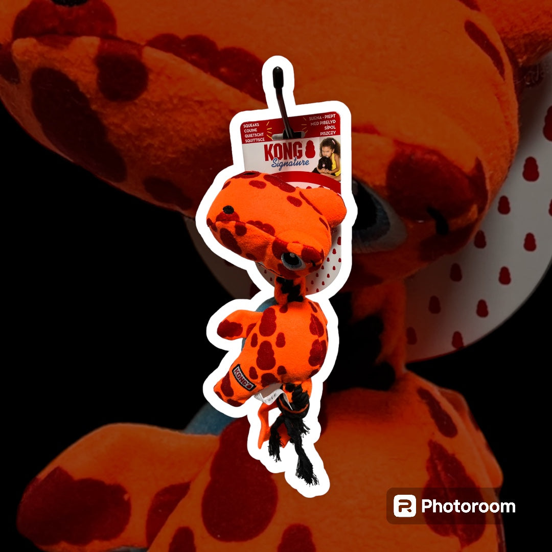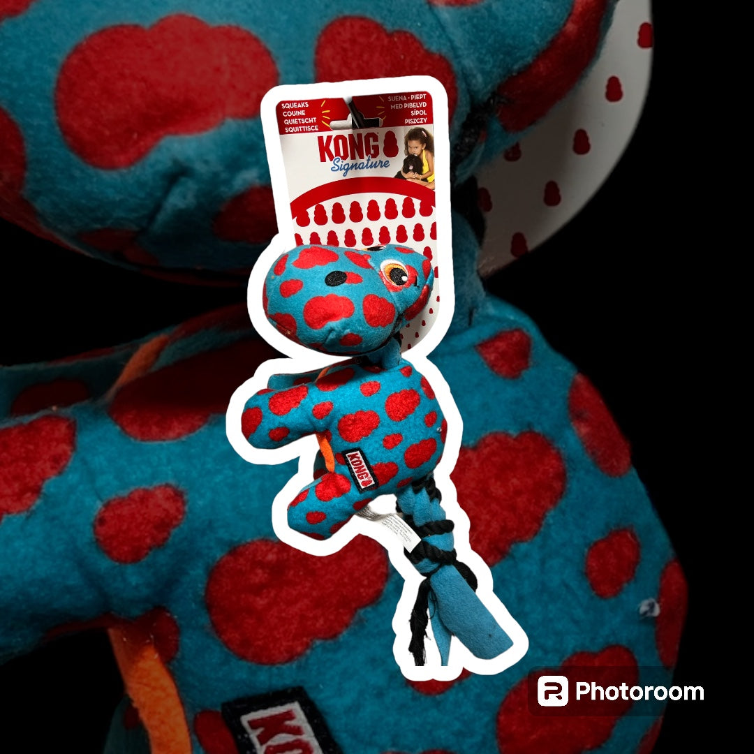 KONG Signature Dynos have a stretchy, strong fleece rope spine from head to tail, boosting their strength during tug-and-shake adventures. Soft, floppy bodies invite instinct-satisfying shaking and tugging while their mighty squeaks fuel long bouts of Jurassic play.