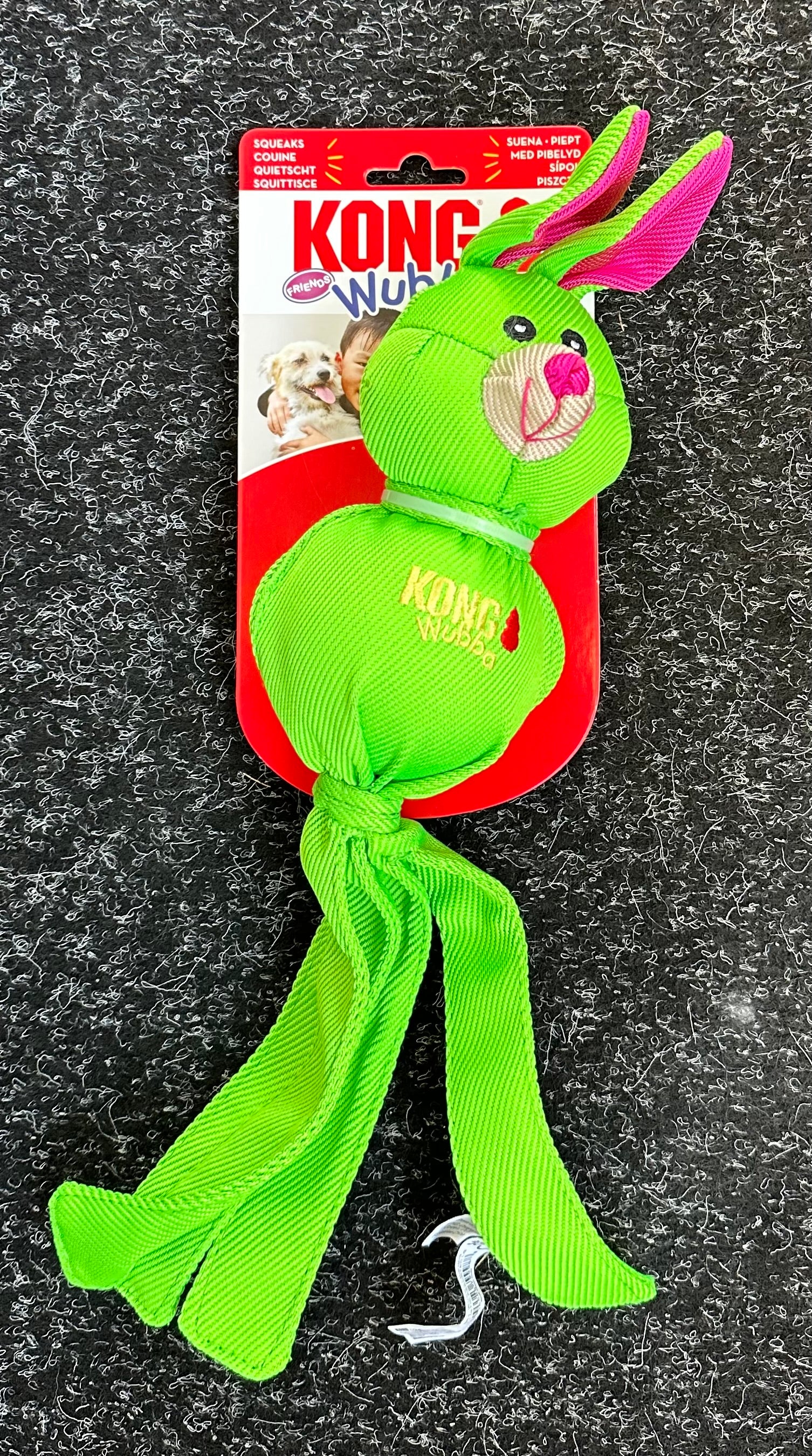 The KONG Wubba Ballistic Friends are the cutest and toughest interactive squeak and shake toys available. These versatile toys are perfect for indoor and outdoor use, and their floppy tails make them easy to pick up and throw. Each toy is covered with durable, reinforced nylon for added toughness.
