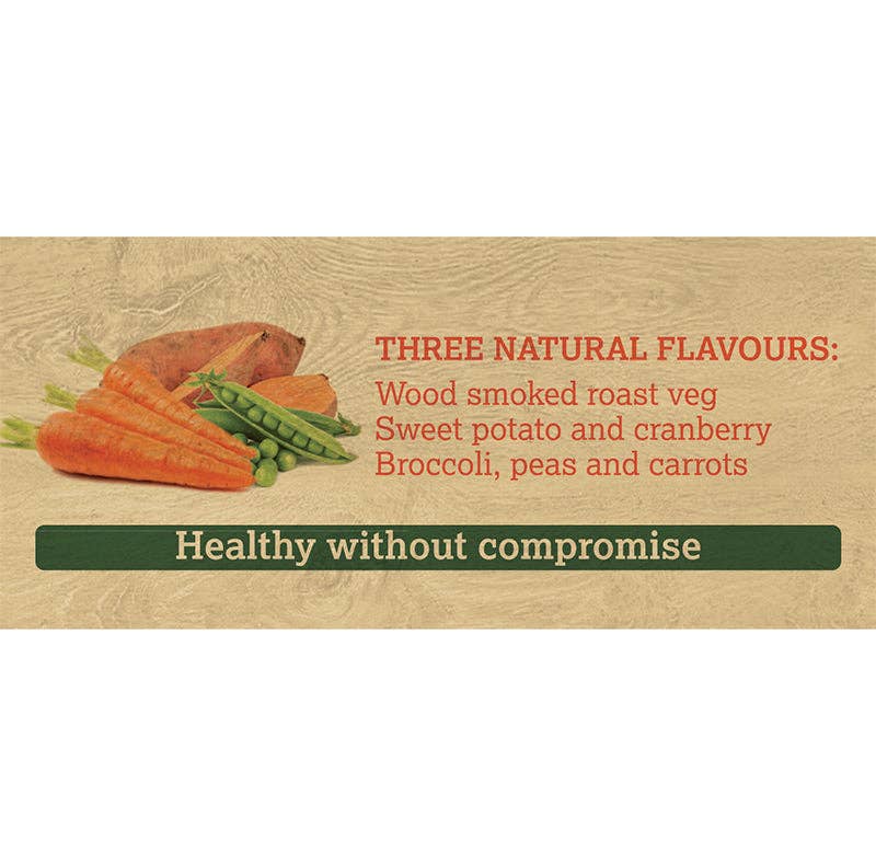 Composition Sweet Potato Flour, Pea Flour, Vegetable Glycerine, Calcium Carbonate, Dried Brewers Yeast, Dried Tomato 2%, Dried Carrots 2% Dried Broccoli 1.5%, Dried Pumpkin 1.5%, Dried Cranberry 1%, Vegetable Oil, Potassium Sorbate, Woodchipped smoked soya bean oil.