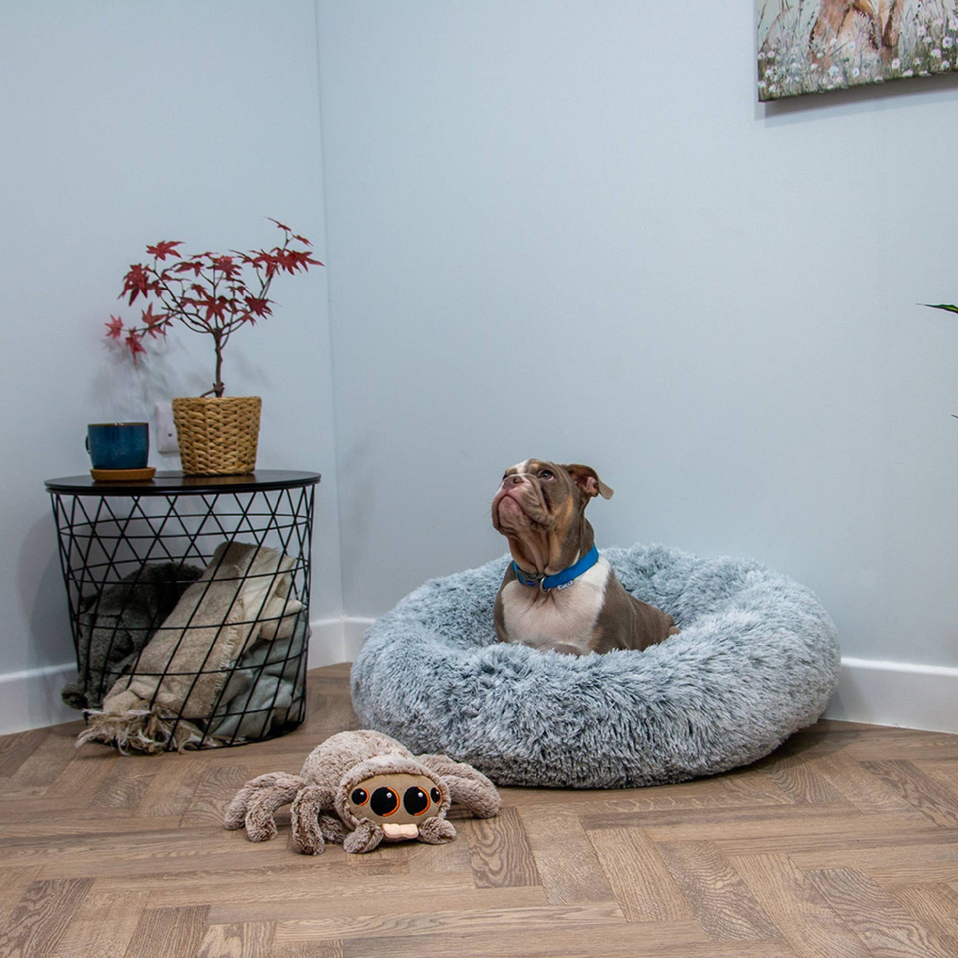 At first our pup was terrified of this but now he loves to play with it, throw it about and snuggle with.
